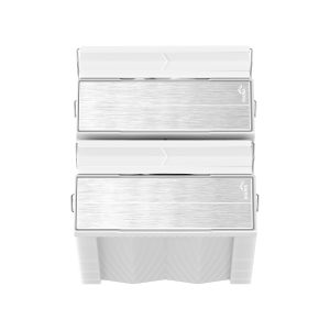This premium cooler features a minimalist all-white design with a brushed metal top, paired with dual 120mm guide ring fans for powerful, quiet cooling.