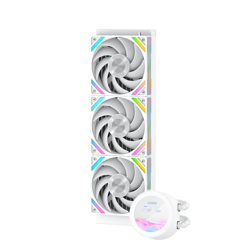 Un 360 AIO dotato di schermo LCD, che segna l'introduzione di funzionalità modulari per offrire opzioni di personalizzazione avanzate. Combina perfettamente un raffreddamento ad alte prestazioni con un design accattivante, offrendo un'esperienza di raffreddamento del PC completamente nuova e dinamica che coniuga estetica ed efficienza.