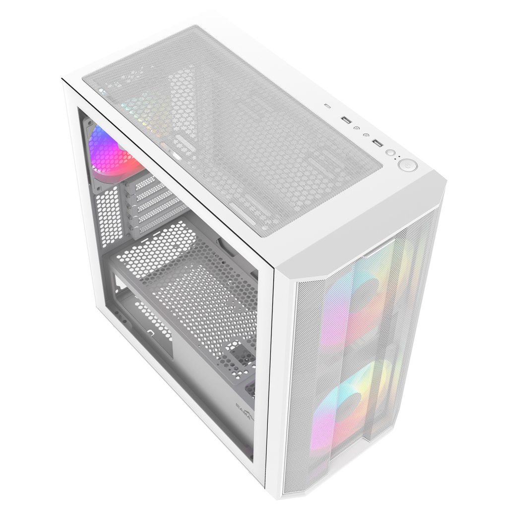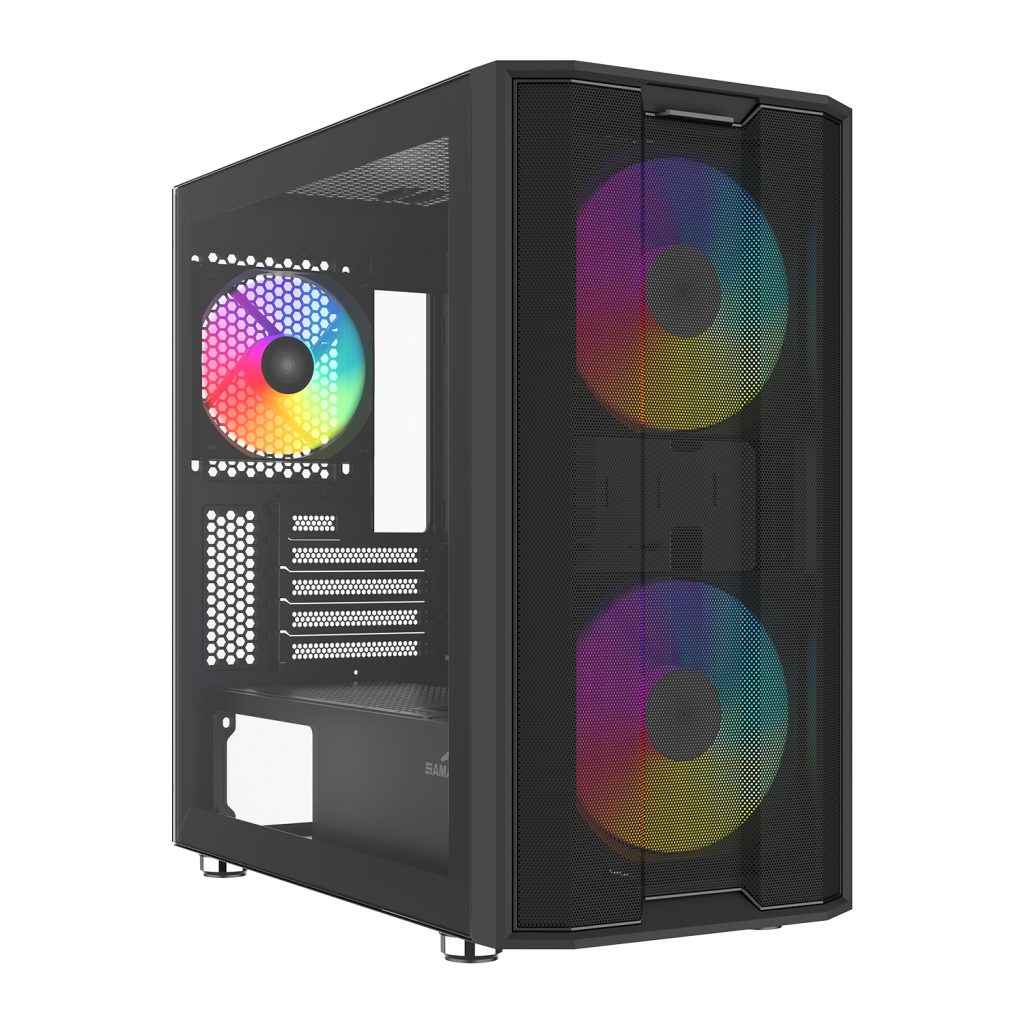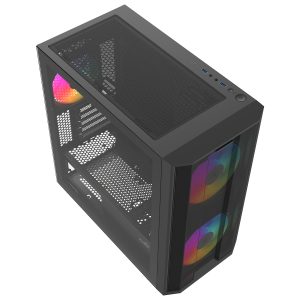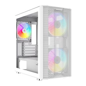 The S30 is a compact M-ATX case supporting 350mm GPUs, 166mm CPU coolers, and a 280mm top radiator. Its high-airflow mesh front and three PWM ARGB fans provide strong cooling, while triple dust filters keep your build clean.