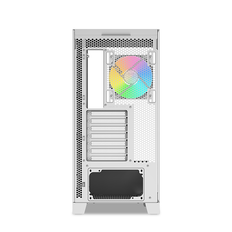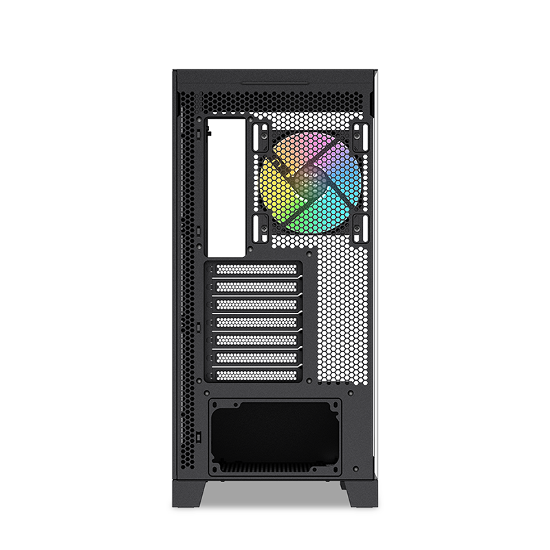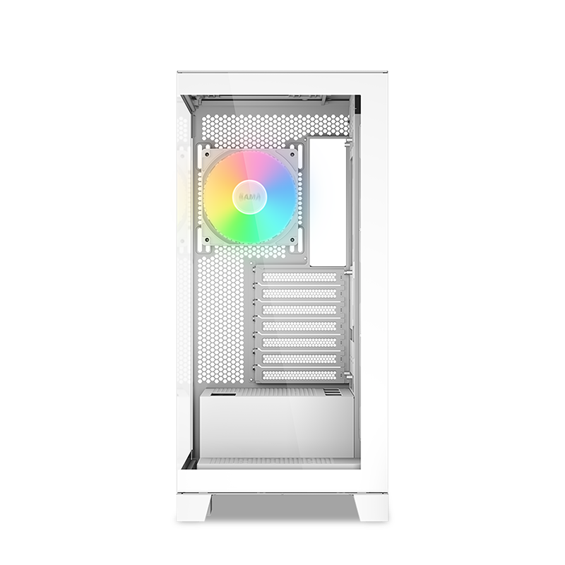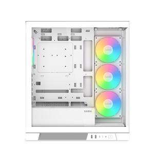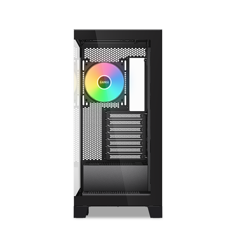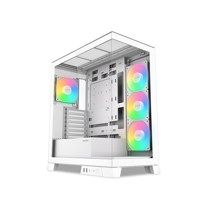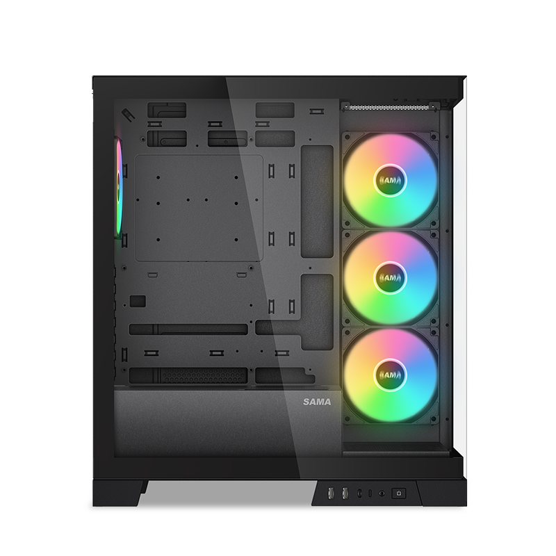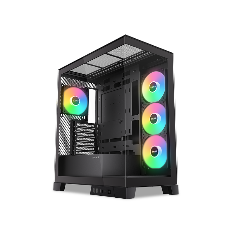 SAMA V50 vanta un design straordinario con due pannelli in vetro temperato e un montante anteriore rimovibile, offrendo una vista panoramica a 270° semplice che mette in risalto il sistema.